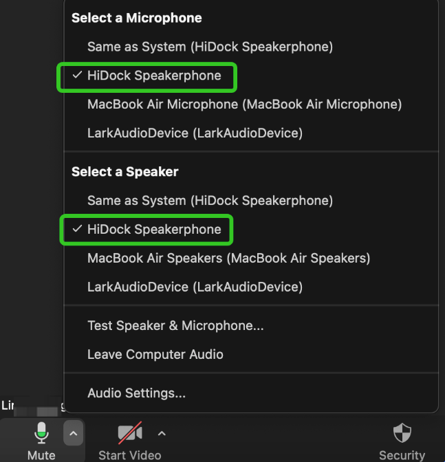 (2) Select the microphone and speaker to be "HiDock Speakerphone" on meeting apps.